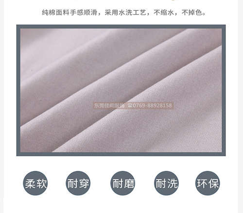 有些老板就有反對意見,很多員工的工作環境都是出汗量大的,必須要用透氣快干的面料,而純棉的工作服面料,結構密度相對要其他摻雜了滌綸的面料要更為緊密。運動產生的熱量如果不及時的排查,會回遷到體內,體質相對比較弱的人會引發感冒等等相關的事件。