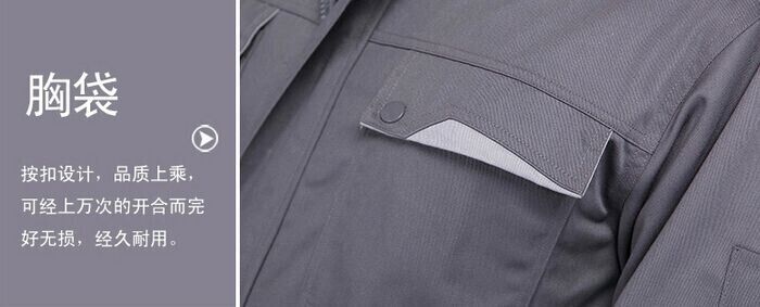 JL-QD262工作服是佳莉的經(jīng)典款式之一,胸前采用銀灰色撞色拼接,走線細(xì)致,實(shí)用性強(qiáng)。自上市以來,好評不斷。左中腰間口袋均采用雙層設(shè)計(jì),傾斜線條,穩(wěn)重大氣,是東莞企業(yè)的選擇。