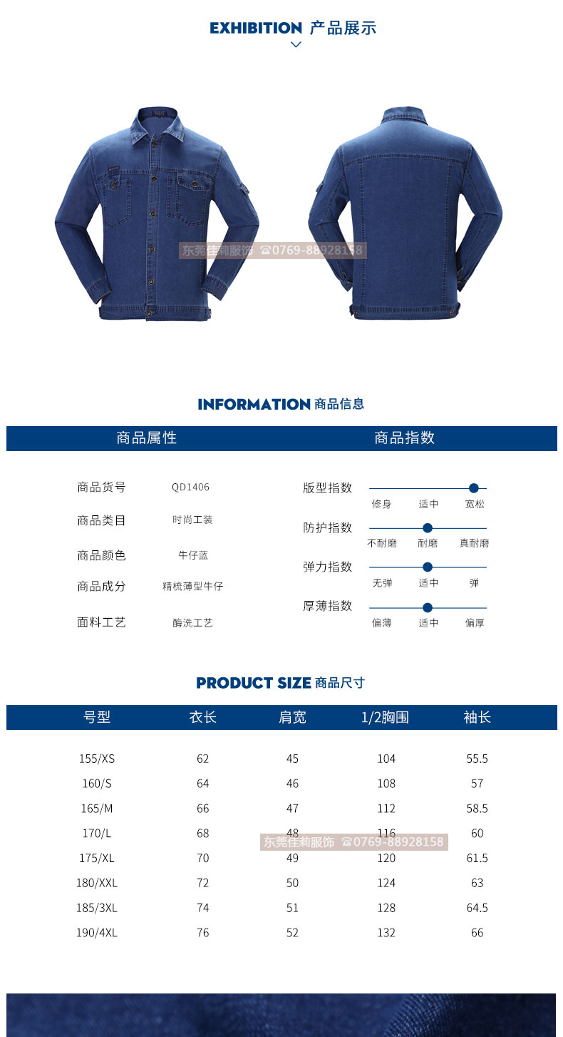 工地工人施工服 薄款長袖牛仔工服 JL-GC019