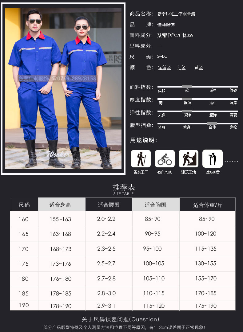工人施工工作服 藍色工作服套裝 JL-GC009