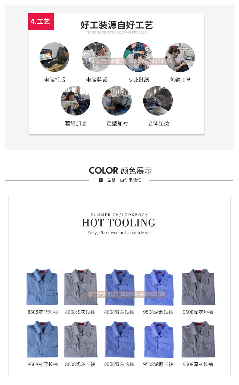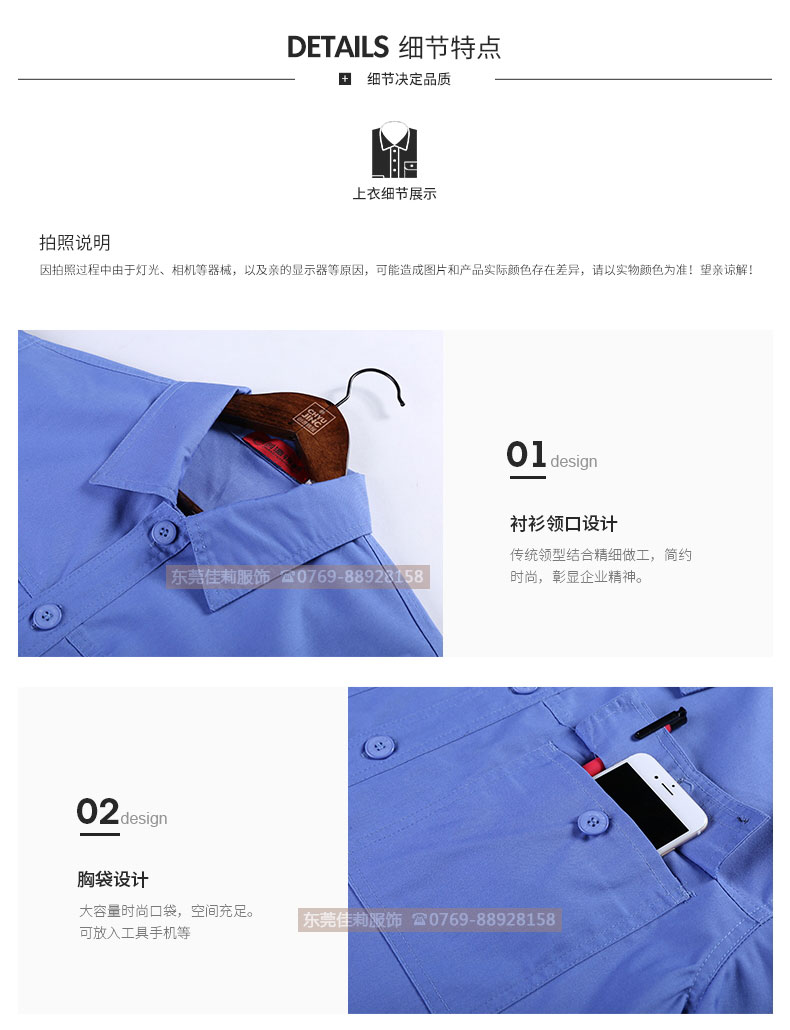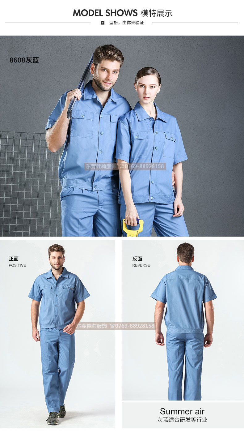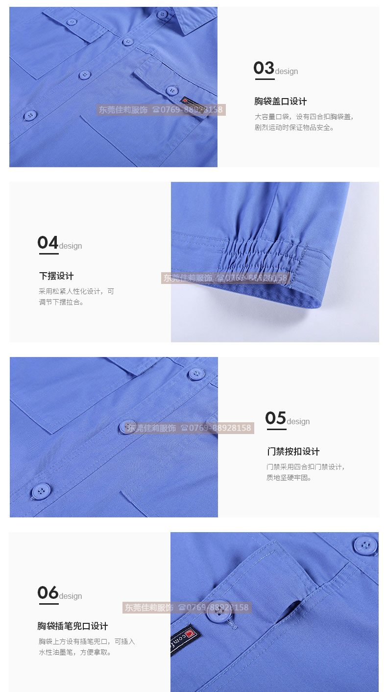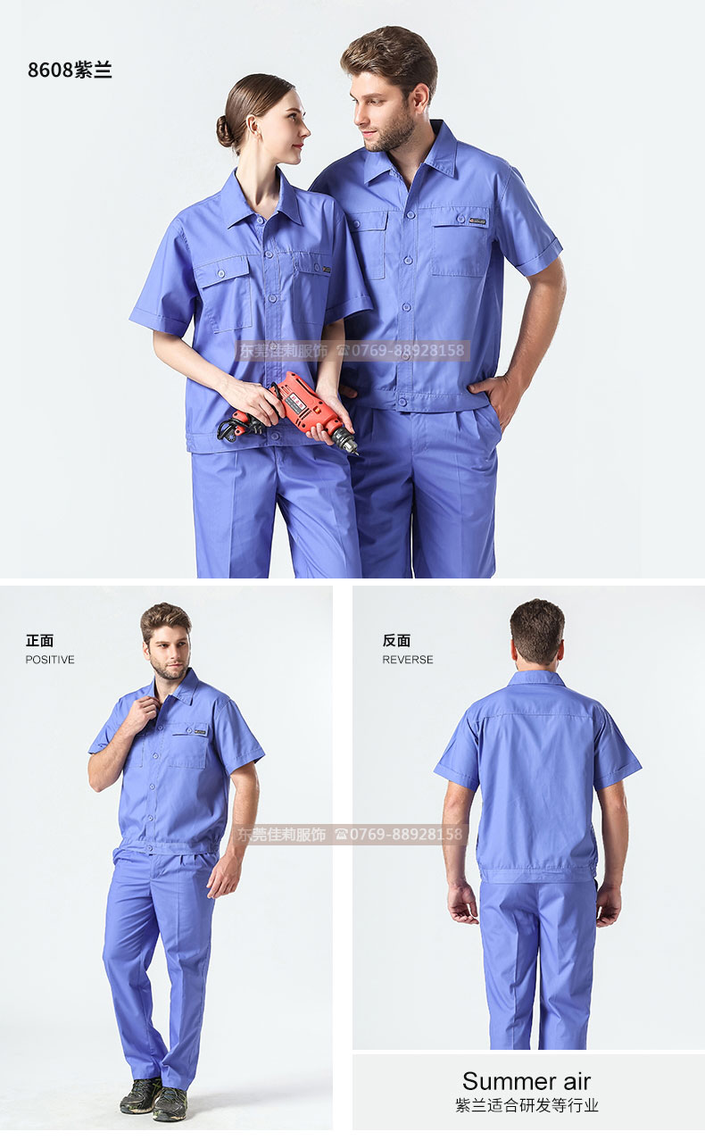 夏季工作服套裝 純藍(lán)工作服定做 JL-XJ180