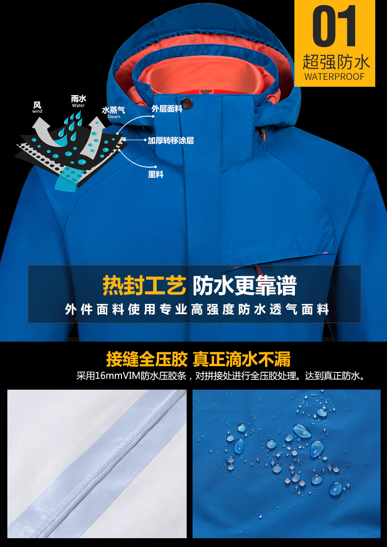 沖鋒衣定制三合一戶外 秋冬防水沖鋒衣套裝JL-566